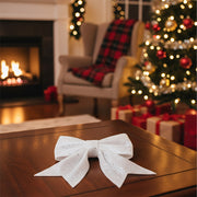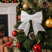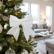 ANYDECO Christmas Bow White Glitter Hanging Decorative Ornaments