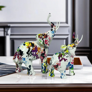ANYDECO Figurine Medium Splatter Graffiti Elephant Sculpture Nordic Resin Statue Decor