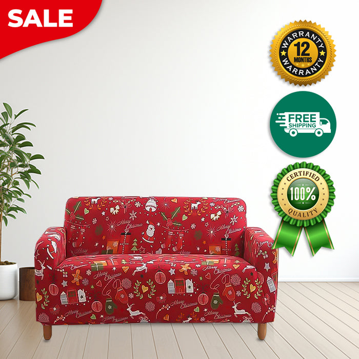 Anyseat Sofa Cover Red Festive Christmas Design Stretchable Non Slip Slipcover