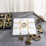 ANYHOUZ Tic-Tac-Toe XO Board Gold and White Tabletop Home Decor Modern Art Living Room Display House Decorative Crafts Metal Ornaments