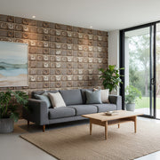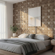 ANYHOUZ 10pcs Vinyl Wall Tile Brown Floral Sun Pattern Waterproof