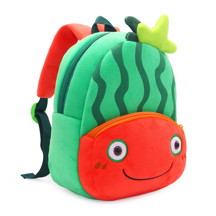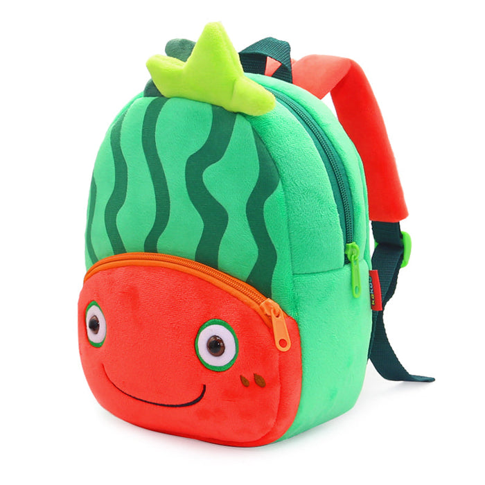 ANYKIDZ 3D Green Watermelon Kids School Backpack Cute Cartoon Animal Style Children Toddler Plush Bag Perfect Accessories For Boys and Girls