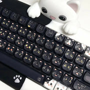 ANYMOB Keycap Keyboard Black Cat 142 Keys Profile Black Cute Naughty Cat Switch Theme Layout