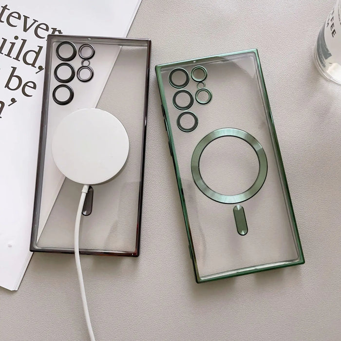 ANYMOB Samsung Case Rose Gold Transparent Magsafe Wireless Charging Magnetic Protective Cover