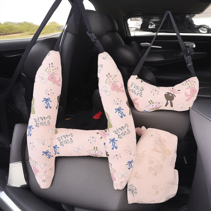 Anypillow Car Travel Pillow Pink Rabbit 1 Set for Kids and Adult Neck Head Support H-Shape Travel Pillow