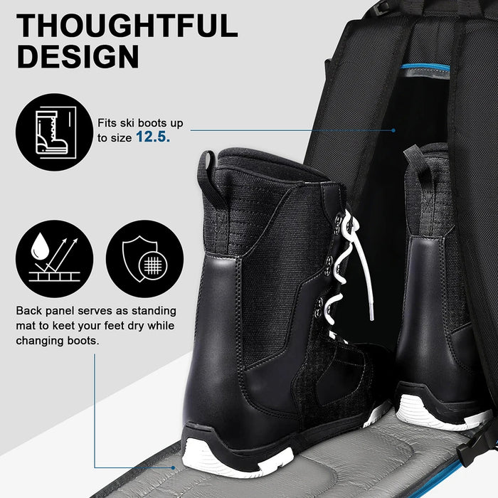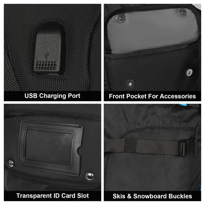 ANYPACK Ski Boot Bag Black Snowboard Travel Backpack With USB Charging Waterproof Anti Skid Bottom Extra Storage Padded Protection