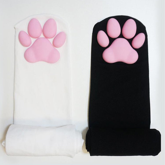 Anyfootwear 1 Pair Off White Free Size Women High Socks Stockings Lingerie 3D Cat Claw Long Socks Thigh High Compression Stockings