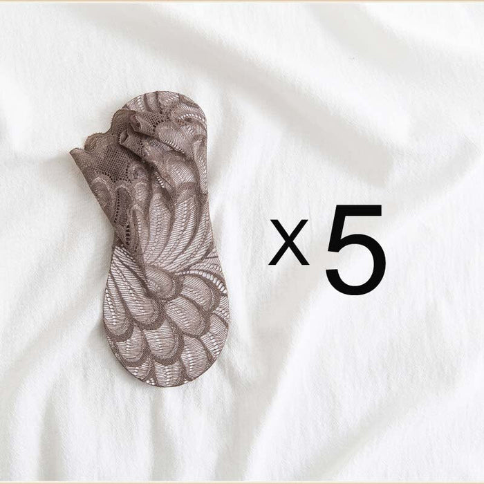 Anyfootwear 5 Pairs One Size 4-5 Gray Fashion Summer Socks With Style Lace Peacock Flower Short Ankle Socks For Women