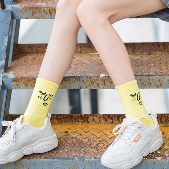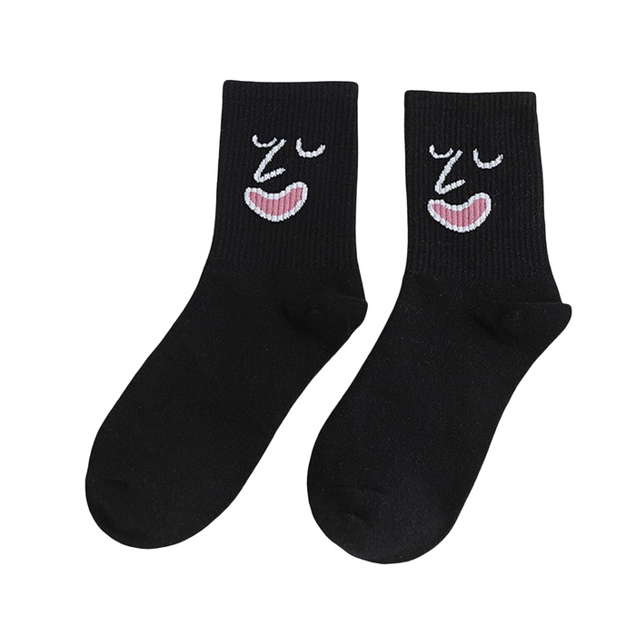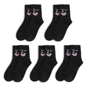 Anyfootwear 5 Pairs One Size 5-9 Black Unisex Wacky Expressions Style Trend Surprise Socks With Candy Colors Funny, Kawaii, Happy Girls Socks For Women