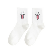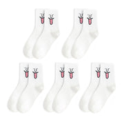 Anyfootwear 5 Pairs One Size 5-9 White Unisex Wacky Expressions Style Trend Surprise Socks With Candy Colors Funny, Kawaii, Happy Girls Socks For Women