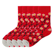 Anyfootwear 5 Pairs Red Size 5-9 Fashion Socks High-Quality Office Sports Business Long Socks Cotton Solid Colors Skateboard Knitted Casual