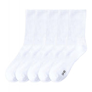 Anyfootwear 5 Pairs Size 10-14 Fashion Socks High Quality Office Sports Business Long Socks Cotton Solid Colors Skateboard Knitted Casual White