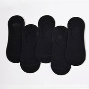 Anyfootwear 5 Pairs Size 4-9 Black Boat Socks Summer Thin Invisible Cotton Non-Slip Silicone Breathable Pure Color For Men