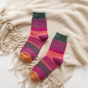 Anyfootwear 5 Pairs Size 5-9 Fashion Socks Colorful Wind-Flowers Cotton Winter Thick Warm Wool Casual for Women Green