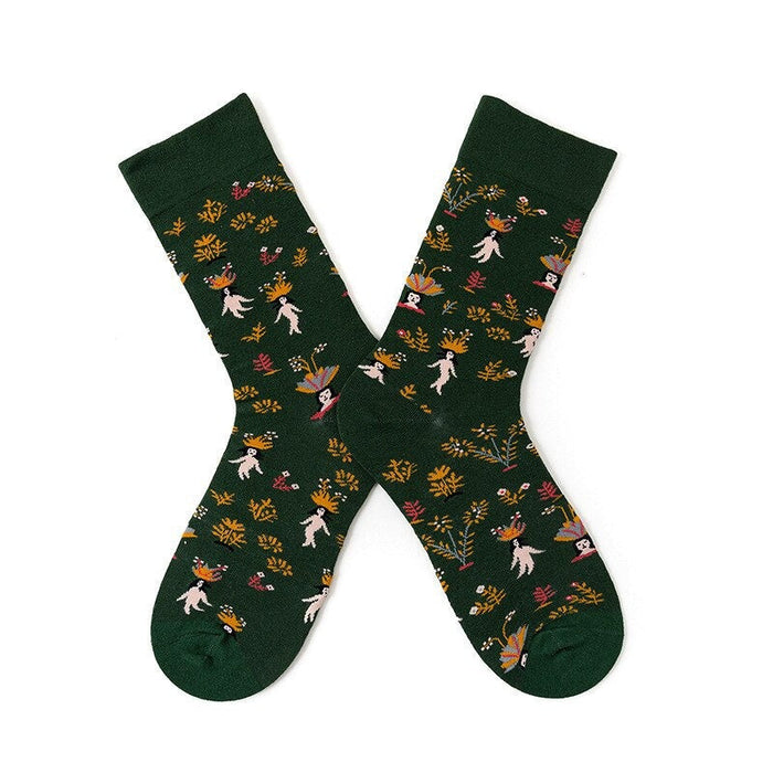 Anyfootwear 5 Pairs Size 5-9 Fashion Socks Combed Cotton Art Abstract Crowned Lady Oil Painting Novelty Happy Funny Christmas Gift for Women