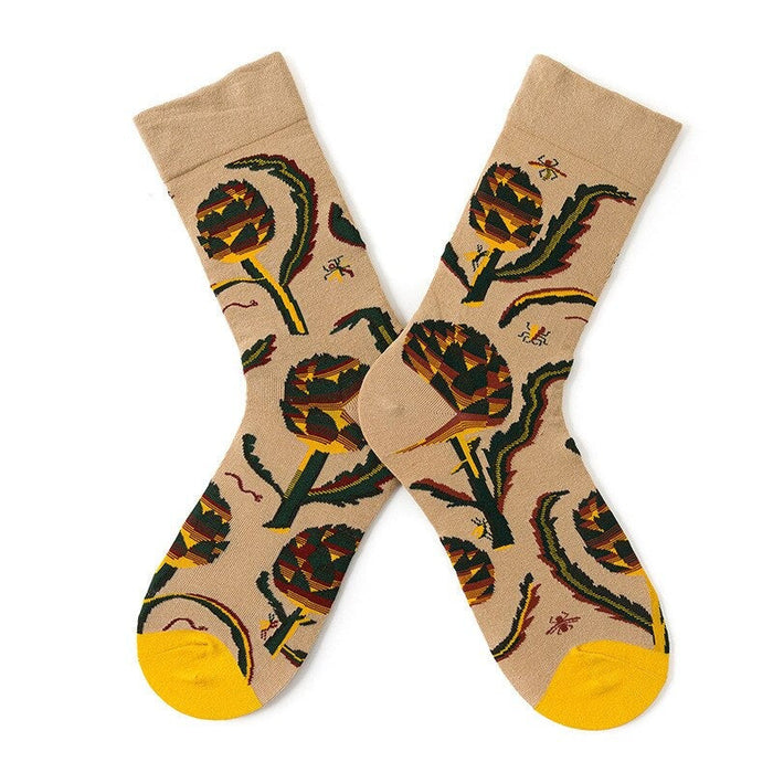 Anyfootwear 5 Pairs Size 5-9 Fashion Socks Combed Cotton Art Abstract Round Flowers Oil Painting Novelty Happy Funny Christmas Gift for Women
