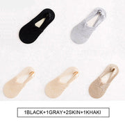 Anyfootwear 5 Pairs Size 5-9 Fashion Socks Lace Flower Style Breathable Antiskid Invisible Ankle Socks for Women (1 Black, 1 Grey, 2 Skin, 1 Khaki)