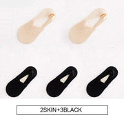 Anyfootwear 5 Pairs Size 5-9 Fashion Socks Lace Flower Style Breathable Antiskid Invisible Ankle Socks for Women (2 Beige, 3 Black)