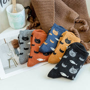 Anyfootwear 5 Pairs Size 5-9 Mix Color Kittens Winter Thick And Warm Wool Socks Casual Euramerican National Wind-Flowers Fashion Cotton Socks