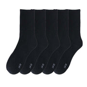 AnyfootwearOX 5 Pairs Size 6-9 Fashion Socks High Quality Office Sports Business Long Socks Cotton Solid Colors Skateboard Knitted Casual Black