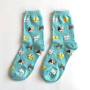 Anyfootwear 5 Pairs Sky Blue Cat Size 5-9 Fashion Socks High Quality Office Sports Bussiness Long Socks Cotton Solid Colors Skateboard Knitted Casual