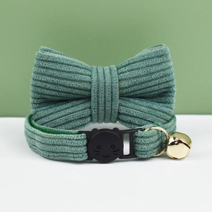 ANYWAGS Cat Collar Hunter Green Bow Large with Safety Buckle, Bell, and Durable Strap Stylish and Comfortable Pet Accessory
