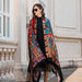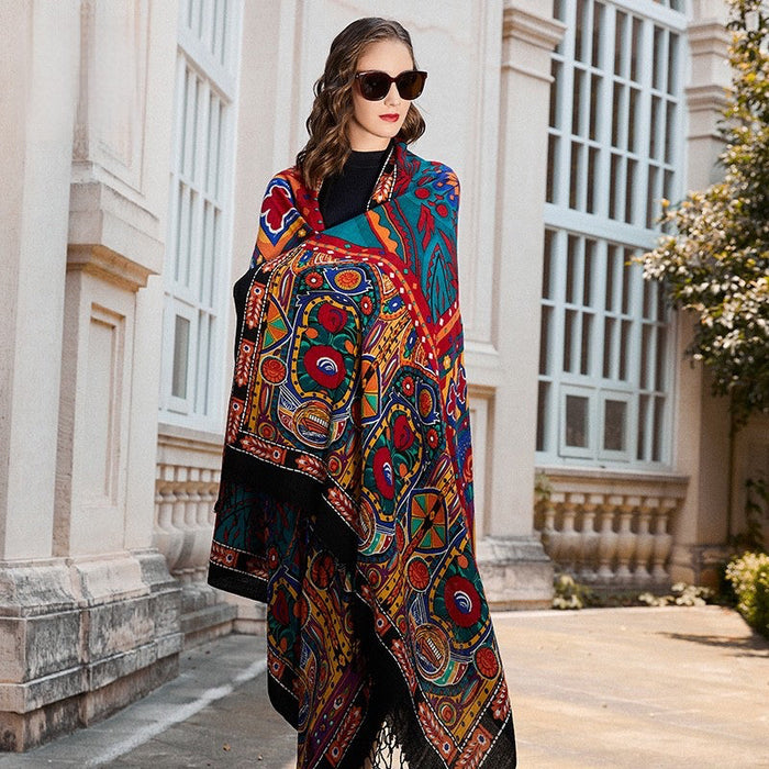 Anyyou 100% Merino Wool Black Ancient Multi-Pattern Neck Silk Satin Large Winter Scarf Pashmina Shawl Bandana Perfect For Women Ladies Fashion Style