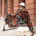 Anyyou 100% Merino Wool Black Silk Satin Floral Silk Satin Large Winter Scarf Pashmina Shawl Bandana Perfect For Women Ladies Fashion Style