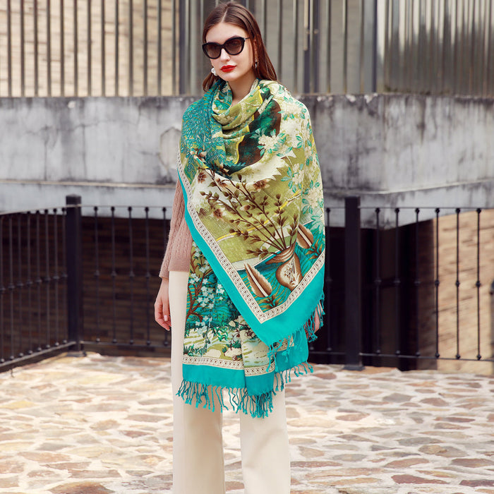 Anyyou 100% Merino Wool Green Neck Wrap Silk Satin Large Winter Scarf Pashmina Shawl Bandana Perfect For Women Ladies Fashion Style