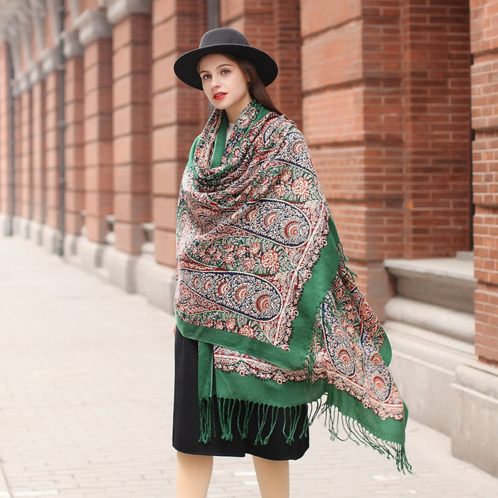 Anyyou 100% Merino Wool Patterns And Greens Silk Satin Large Winter Scarf Pashmina Shawl Bandana Perfect For Women Ladies Fashion Style