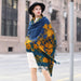 Anyyou 100% Merino Wool Yellow Blue Royal Silk Satin Large Winter Scarf Pashmina Shawl Bandana Perfect For Women Ladies Fashion Style