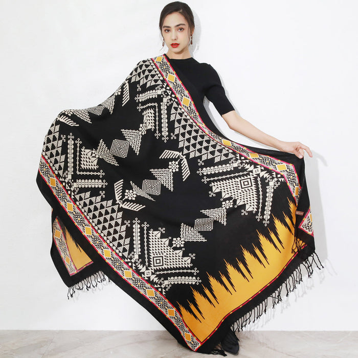 Anyyou 100% Merino Wool Yellow Buildings Silk Satin Large Winter Scarf Pashmina Shawl Bandana Perfect For Women Ladies Fashion Style