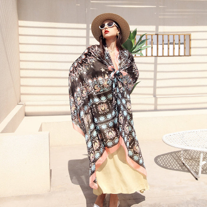 Anyyou 100% Mulberry Silk Black Long Scarf Luxury Brand Women Beach Shawl Wear Swimwear Pashimina Face Shield Foulard