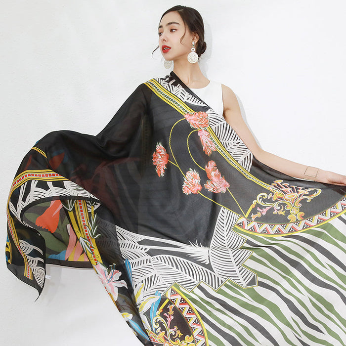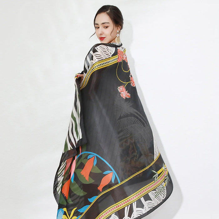 Anyyou 100% Mulberry Silk Ebony Black Long Scarf Luxury Brand Women Beach Shawl Wear Swimwear Pashimina Face Shield Foulard