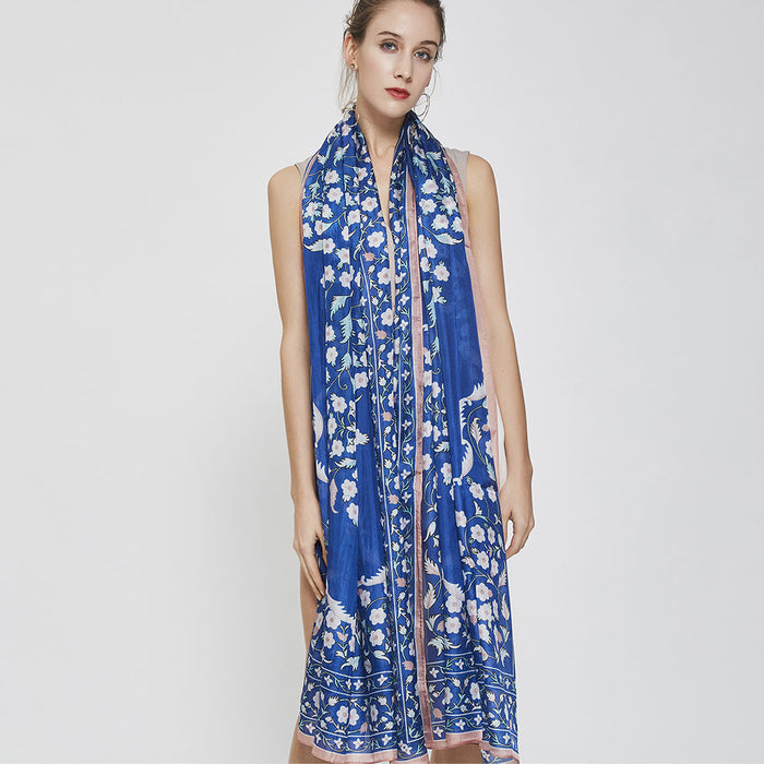 Anyyou 100% Mulberry Silk Ocean Blue Long Scarf Luxury Brand Women Beach Shawl Wear Swimwear Pashimina Face Shield Foulard