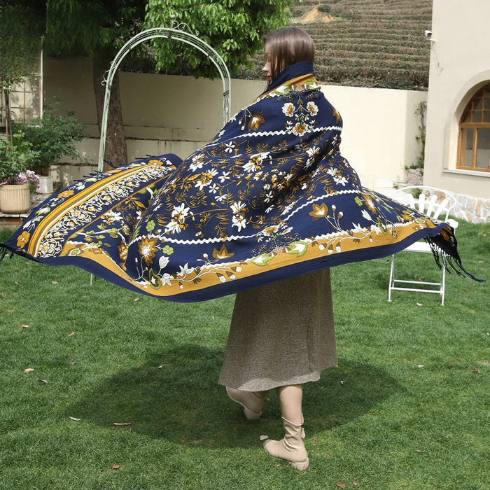 Anyyou 100% Pure Merino Wool Army Green Poncho Winter Large Scarf Pashmina Shawl Bandana Neck Wrap For Women