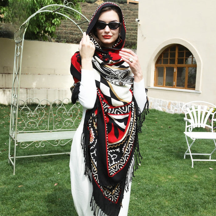 Anyyou 100% Pure Merino Wool Black Poncho Winter Large Scarf Pashmina Shawl Bandana Neck Wrap For Women