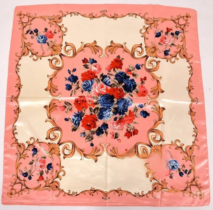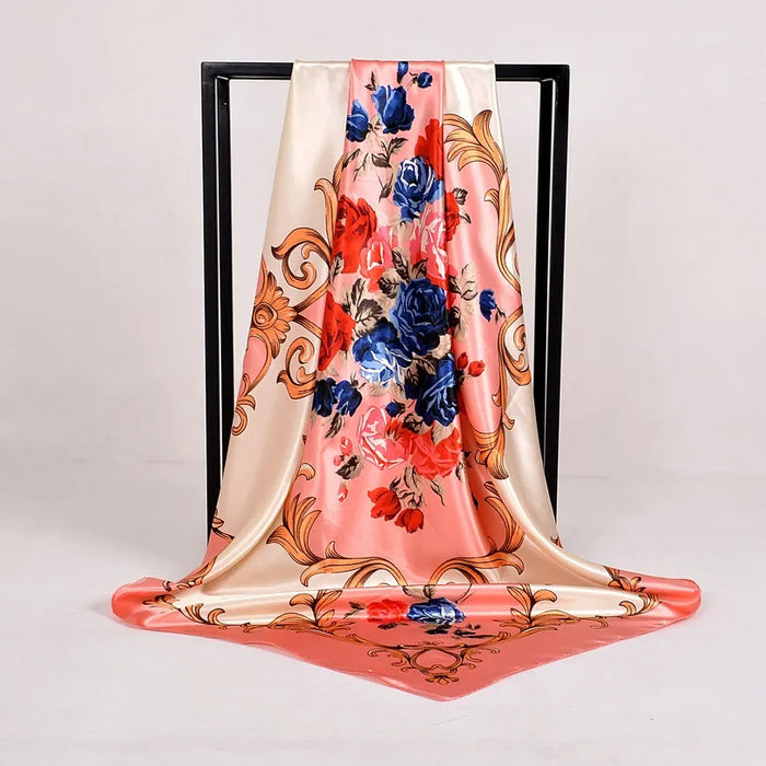 Anyyou Scarf for Women Roses Pink Gardon Printed Satin Silk Shawl Fashion Accessories Women Chain Flowers Pattern Autumn Winter Scarves